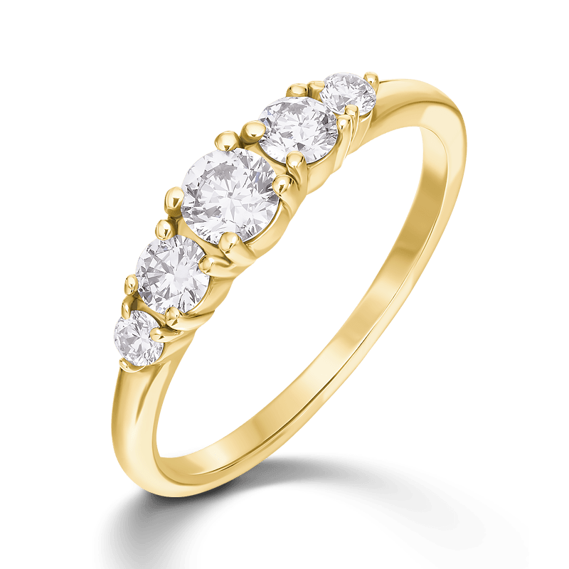 טבעת זהב משובצת 5 יהלומים טבעיים ומנצנצים