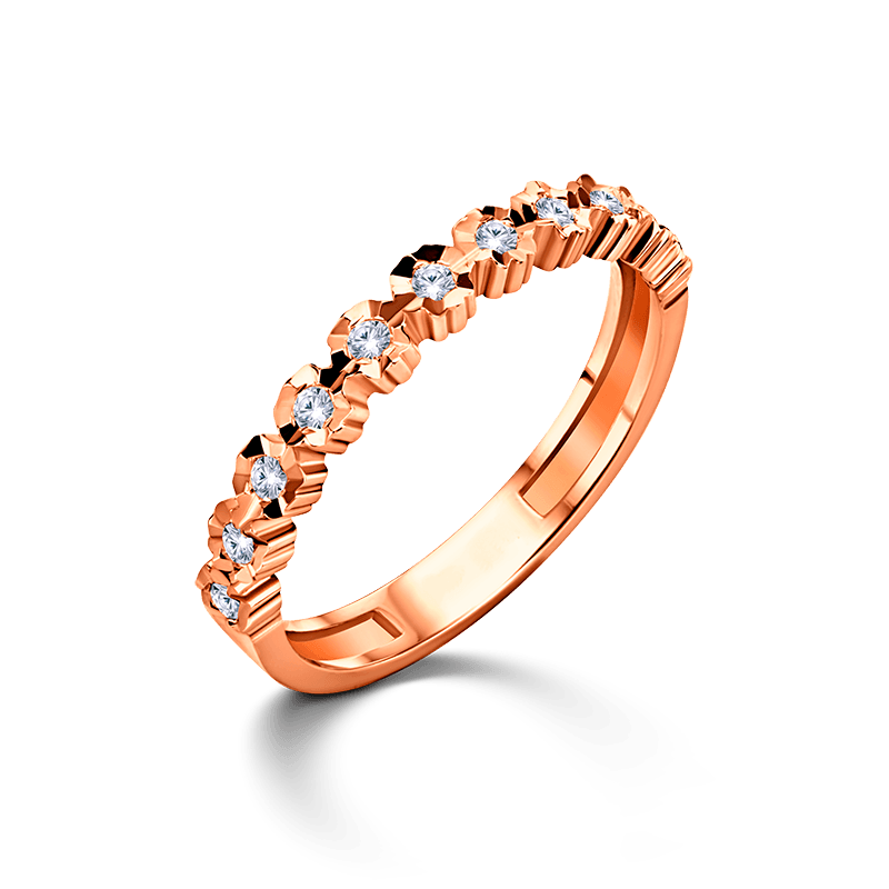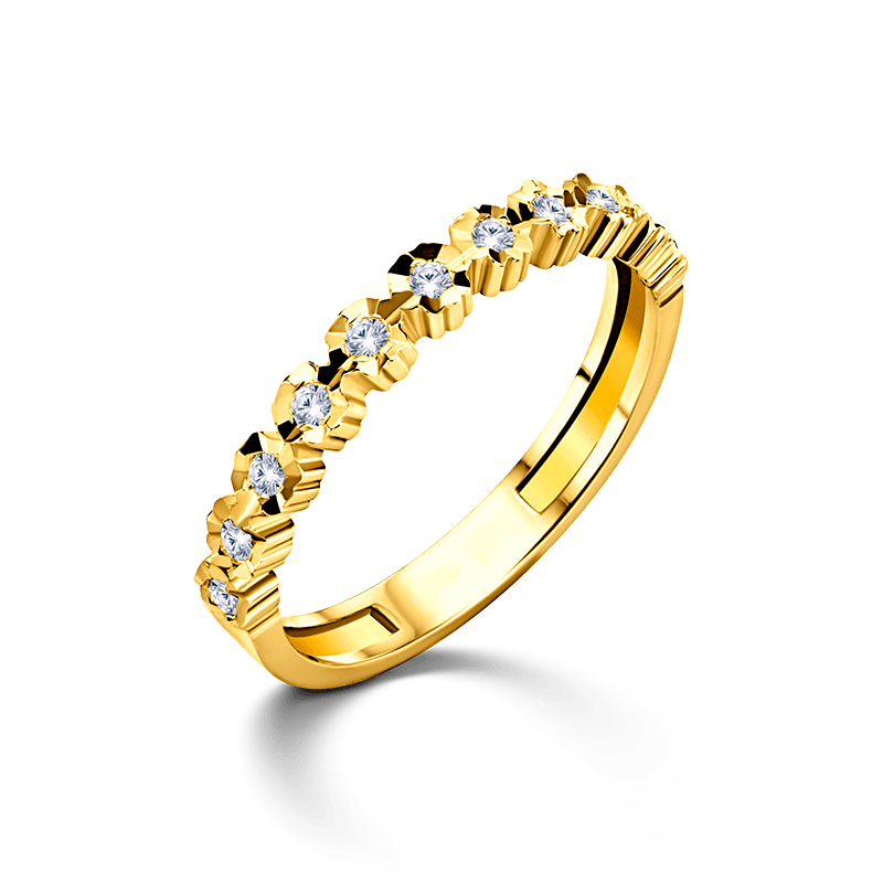 טבעת זהב משובצת 0.18 קראט יהלומים טבעיים ומנצנצים