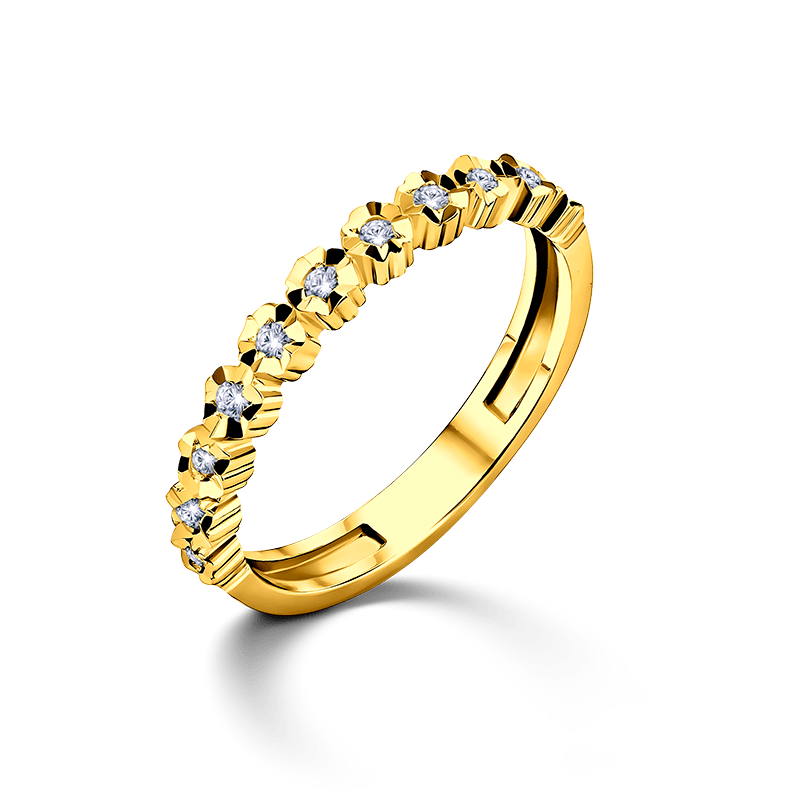 טבעת זהב משובצת 0.18 קראט יהלומים טבעיים ומנצנצים