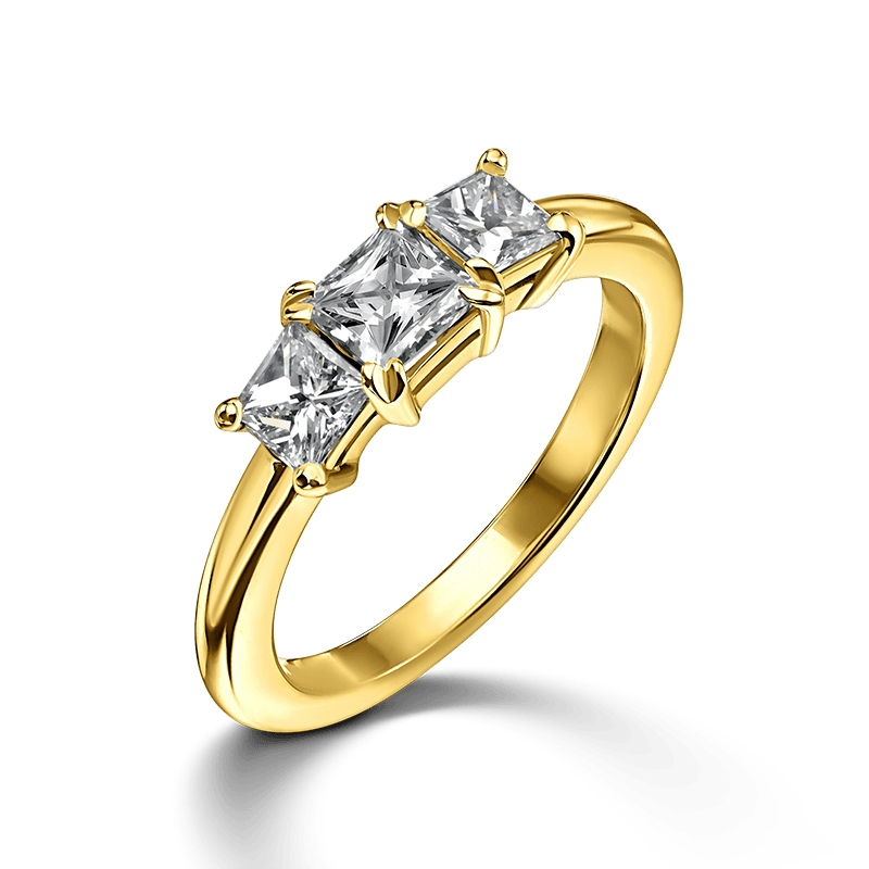 טבעת זהב והילומים בחיתוך פרינסס טבעיים ומנצנצים
